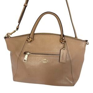 Coach Two-way Tan Bag with Pebble Leather and Adjustable Crossbody Strap.