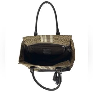 Coach Used 19915 Legacy Signature Stripe Candice Carryall Handbag Bag Brown