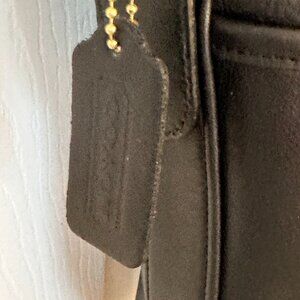 Coach "Bleeker Bag" #4153 in black leather with brass hardware has been FULLY RESTORED and in excellent vintage condition; circa 1990, this bag has an adjustable strap allowing it to be a shoulder bag OR crossbody bag; it boasts a front pocket, zipper top and inside zipper pocket for added safety and security; see approximate measurements in photos.