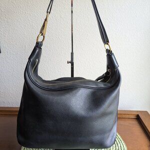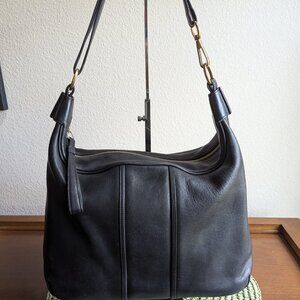 Coach VTG Hampton Black Leather Women's Shoulder Bag Gold Hardware Satchel 6951