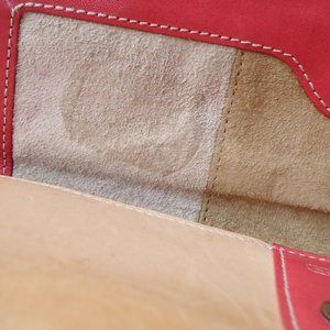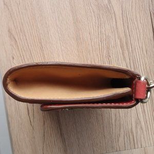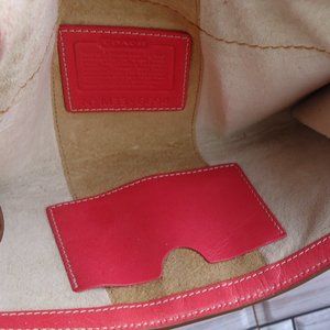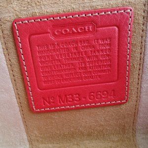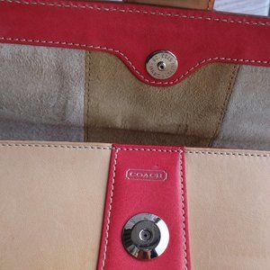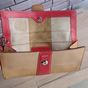 Vintage Coach Vachetta leather buckle wristlet wallet. Style #M33-6694. Authentic clutch bag, wristlet or large wallet, likely made in 2003. Natural & pink. Made from vachetta leather, it's trimmed in pink leather and is unlined inside with one small slip pocket. From a smoke-free home. Good preowned condition with some signs of use and prior wear: rubs, spots noted to exterior and parts of interior (see all pics. for examples). Clean inside and out. Please zoom in all pictures for details and condition. Item in Pictures Is the Exact Item You Are Purchasing. Approximate measurements: L 9"× H 4"× D 1".