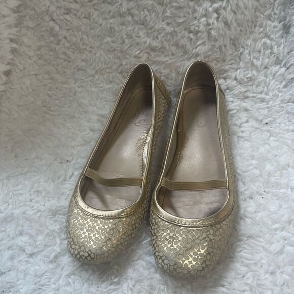 Coach Valari logo leather gold ballerina flats SZ8.5.
