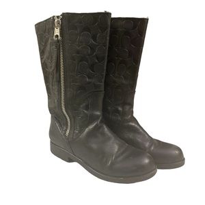Leather Coach logo calf boots
