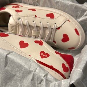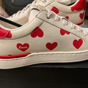 Coach Valentine's Leather Print Lowline Low Top Chalk/Sport Red Sneakers