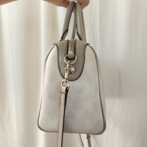Coach Varsity Stripe City Zip in Signature Silver/Chalk Orange Hand Bag