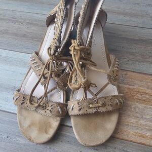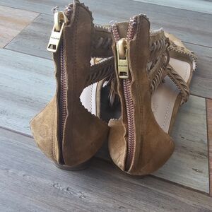 Coach Via Demi Wedge Sandals US 9.5B Brown Suede Lace-Up Gladiator Tassel