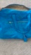 Eye-catching blue Coach travel bag. Features signature pattern and front zip pocket. Ideal for stylish journeys.