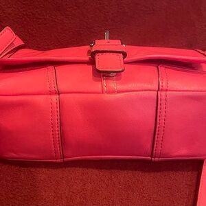 Brighten your look with this vibrant pink Coach crossbody. Sleek design with adjustable strap.