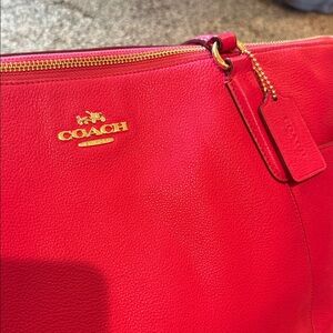 Bright pink tote with sleek design. Crafted by Coach. Perfect for daily use. Well taken care of; Great condition.