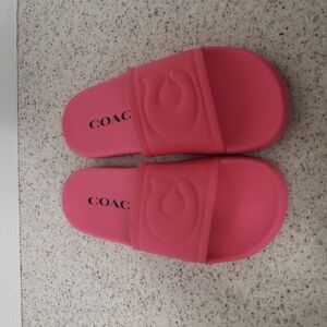 coach ulla slides, coach rubber sandals, pink coach slide sandals, women’s size 7 slides, gently used coach shoes, poolside coach sandals, sporty chic slides, cottagecore summer sandals, witchy casual shoes, goth glam slides, coach pink sandals