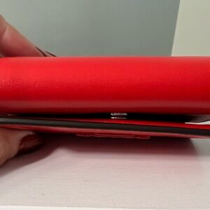 Elegant Coach wallet in vibrant red leather. Sleek and stylish design. Excellent condition.