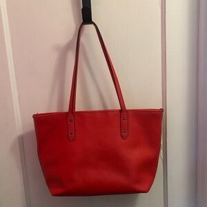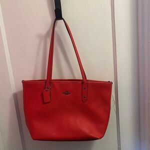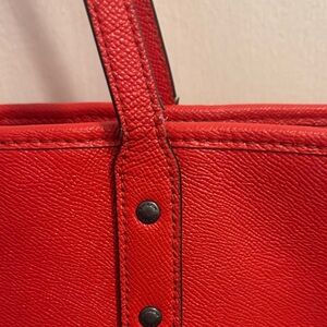 Chic and spacious red tote by Coach. Ideal for daily use.