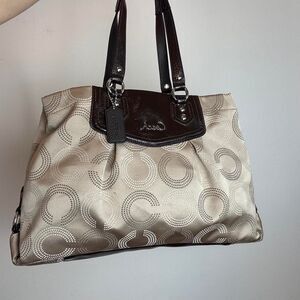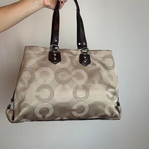 Coach Vintage Early 2000s Y2K Brown Signature Canvas and Patent Leather Shoulder Bag