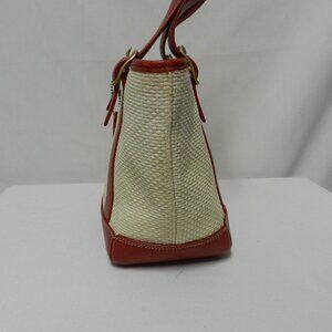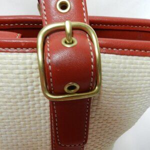 Coach Vintage 8909 Leather & Straw tote handbag purse Red & Cream front pocket