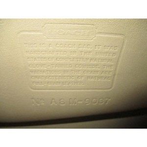 For sale is a unique, vintage, COACH, beige, cream, cowhide leather, cross body bag. 8.5"L x 3"W x 7.5"H. 3/4 inch wide, 50 inch long, 22 inch drop 5 hole adjustable strap. It has gold tone/brass accents with a top zipper closure. One interior zipper compartment. Stamped detachable interior key chain intact and exterior signature tag attached. It is signed Coach with the Coach stamp and number A8M-9087. Neutral - and, always in style! All measurements are approximate. 0701s