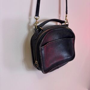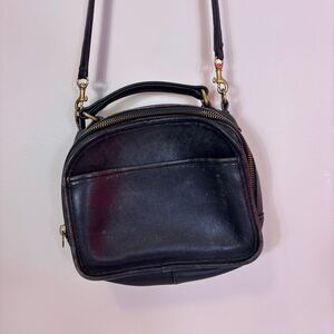 Good condition Coach Vintage Black Leather Lunchbox Zip Crossbody Bag Style 9991