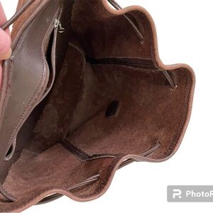 Vintage Pre-Owned Coach Brown Leather Buckle Backpack. Coach Creed 9064. Vintage Condition showing signs of age and use on bag interior and exterior. Including leather cracking and seam ripping of leather drawstring pull.