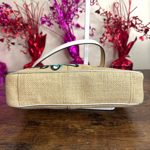 Beautiful, rare, vintage Coach purse. The cutest leather bees with crystals on bee's eyes. Leather pieces with embroidery flowers on the front exterior. The silver leather trim, tags, and leather piping are all in excellent shape! The interior has a small spot underneath the creed. This Coach bag is beautiful, neat, and such a fun size for all events. Preloved in great condition with normal wear on the exterior and interior. Please see all pictures. Ready to be used.