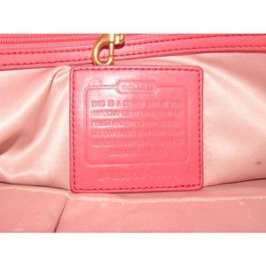 The interior opens with clip closure and is lined in a soft pink sateen fabric and features a back face zipper pocket, with stamped Coach tag with creed and style #13603, and two slip pockets. There is room for all your daily belongings plus tablet or book. This purse can carry a lot without looking overstuffed- don't miss out!