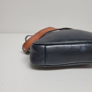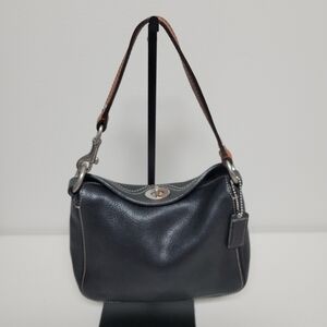 Elegant black leather shoulder bag with contrast stitching, perfect for any occasion