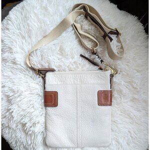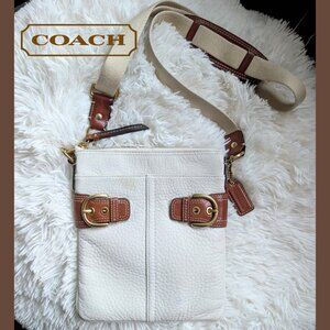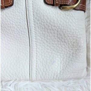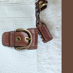 Coach Vintage Double Buckle Crossbody Bag Pebbled Leather Chalk White & Cognac