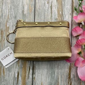 Coach Vintage Gold Lurex Studded Mini Key Chain Wallet Coin Purse Bag