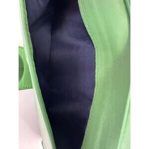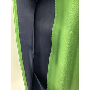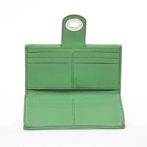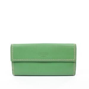 Coach Turnlock Checkbook Wallet In Green Leather With Contrast Stitching And Flap Closure. Y2K Vintage Style.