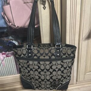 Coach Vintage Hampton F13973 Handbag Signature Jacquard & Leather