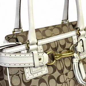 Incredible Coach Vintage Hampton Signature Satchel. Stunning Coach Hampton Satchel in excellent condition, extremely light signs of usage on the handle and the bottom four studs, 8/10. Canvas is perfect, leather is in great shape all around, the gold accents are almost scratch free and are shining like new, and it also comes with beautiful white hangtag and tassel!