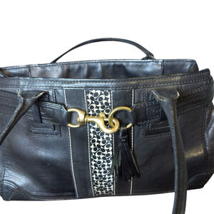 Discover the epitome of chic practicality with the Coach Vintage Hamptons 10552 Stripe Shoulder Bag. This striking piece, crafted in 2000, seamlessly blends black canvas with signature Coach stripes, capturing the spirit of timeless elegance and effortless style. Its spacious interior and thoughtful design make it an ideal companion for both everyday adventures and special occasions, while the robust construction ensures it stands the test of time. Perfect for collectors and fashion aficionados alike, this bag not only showcases Coach's dedication to quality but also serves as a statement piece that transcends trends. Embrace the artistry of vintage design and elevate your collection with this remarkable bag that embodies sophistication in every stitch.
