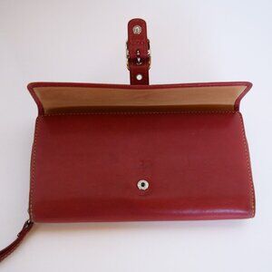 Coach Vintage Hamptons Red Leather Large Trifold Wallet with Buckle