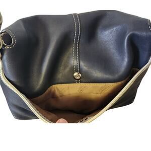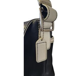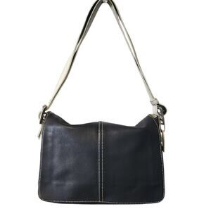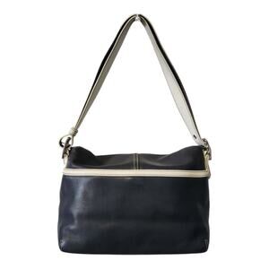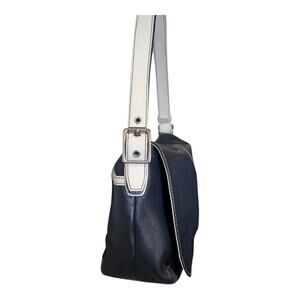 Coach Vintage J043 Navy Blue & White Leather Hampton Legacy Flap Shoulder Purse