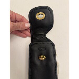 This Coach Vintage Leather Cell Phone Case Wristlet or Belt Bag Pouch is a stylish and compact accessory perfect for casual occasions. Made from black leather with gold hardware, it features a solid pattern and a turn lock closure. New with tags.