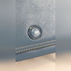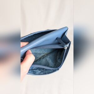 Coach vintage long envelope wallet in a beautiful shade of sky blue. Made of smooth, glove tanned leather, that has been cleaned and conditioned. This wallet has monogrammed nylon lining which matches the blue leather, and it features contrast stitching on the exterior. Lots of pockets and credit card slots.