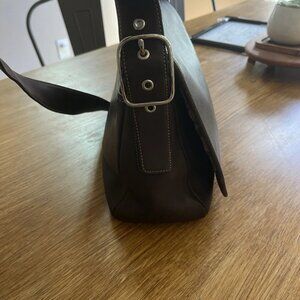 This VINTAGE Coach Brown Legacy Saddle Bag is a stylish and versatile accessory perfect for any occasion, whether it’s with or play . It has a front flap close and an outside back pocket the length of the bag, perfect for your phone and keys. Crafted from brown Italian leather with silver hardware BUCKLE accents, this rectangular bag features a magnetic closure and an adjustable crossbody /shoulder strap for added convenience. The signature C fabric lining adds a touch of luxury, while the inner zipper and slip pockets provide practical storage for your essentials. This vintage piece exudes a classic and professional vibe, making it a must-have for any fashion-forward individual looking to add a designer touch to their outfit. It’s a classic, sturdy bag for your collection.