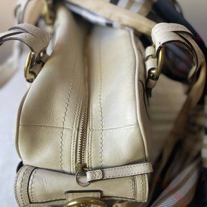 - Chocolate-colored cotton lining with ivory leather trim and key hook