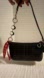 Black Leather Vintage Mini Shoulder Bag by Coach. Features a red checkered accent and unique metal chain strap.