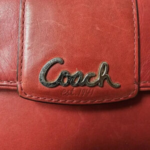 Coach Vintage Red Leather Trifold Checkbook Wallet Designer