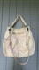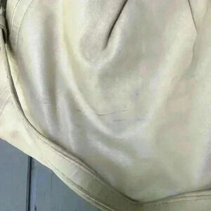 Preowned but in good condition. It has some minor scratches and pen mark outside. Need some cleaning outside. Very clean inside. Color is off white cream color. Medium size bag