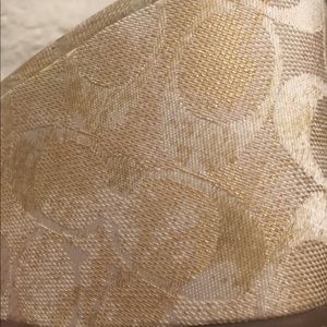 Vintage Coach Gold and White Signature "C" Platform Sandals with brass faux buckle hardware. These exclusive sandals are in excellent condition and been slightly used ❤️