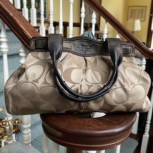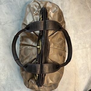 Coach Vintage Signature monogram, Gold Canvas brown leather trim Brass hardw