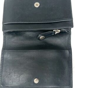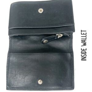 Coach Vintage Black Leather Coin Purse Wallet. This vintage Coach wallet shows some wear from aging but in overall good condition (no tearing). The Coach name is on the interior leather zipper pull and interior black canvas print. 4.75" length by 3" tall by. 1" depth
