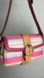 Elegant Coach bag in pink and tan leather. Features a zip closure and detailed craftsmanship. In great condition, no wear on the leather handle, some very minor wear on the buckle part but not so noticeable (everything pictured) look at all pictures carefully. No stains on the canvas part.