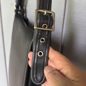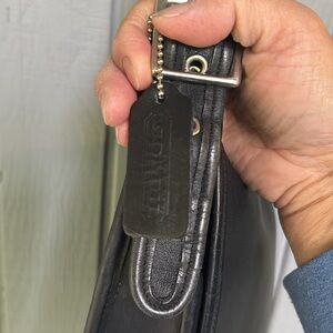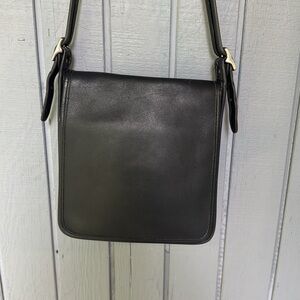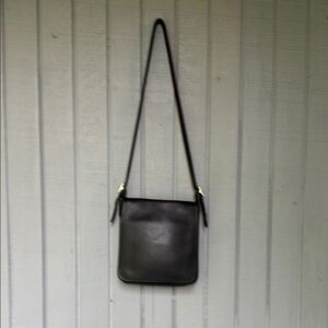 Sleek black leather crossbody bag. Perfect for everyday use. Preowned in good condition. Minor wear and scratch.