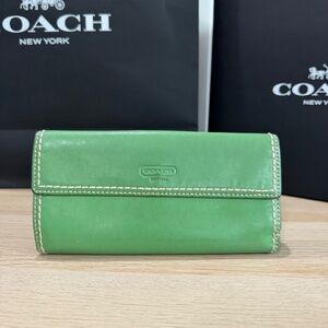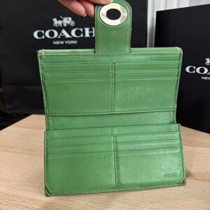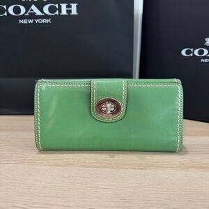Coach Vintage Y2K Green Leather Hampton Turn-Lock Clutch Wallet
