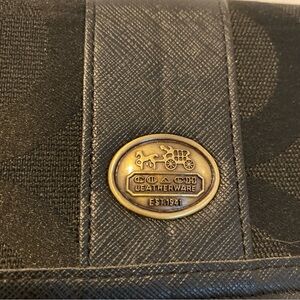 Coach Vintage Y2K Logo Black Leather & canvas Wallet with Gold Emblem