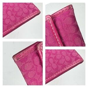 This little pink signature wallet is in pretty good shape. The corners have very slight wear; otherwise, in beautiful authentic condition. The 100% leather insides shows the once level of detail and materials used from vintage Coach.