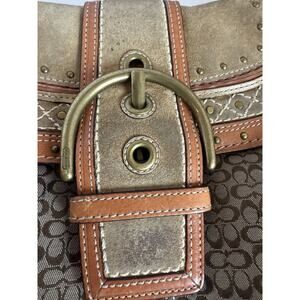 Coach Vintage Y2K Soho F11517 Signature C Canvas Patchwork Hobo Bag Tan
