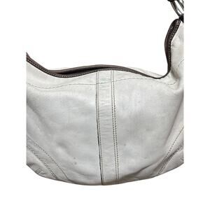 Coach, Vintage, Y2K, 2000s, Soho, Hobo Bag, Shoulder Bag, Crescent Bag, White Leather, Brown Trim, Contrast Stitching, F10908, K0751, Authentic, Designer, Classic
