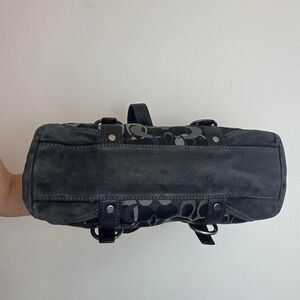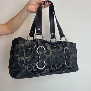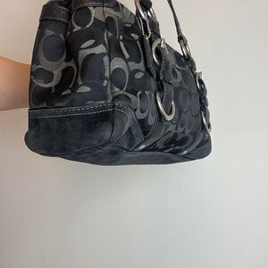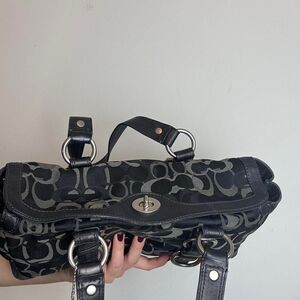 Coach Vintage Y2K Turnlock Black and Grey Signature C Canvas and Leather Suede Shoulder Bag